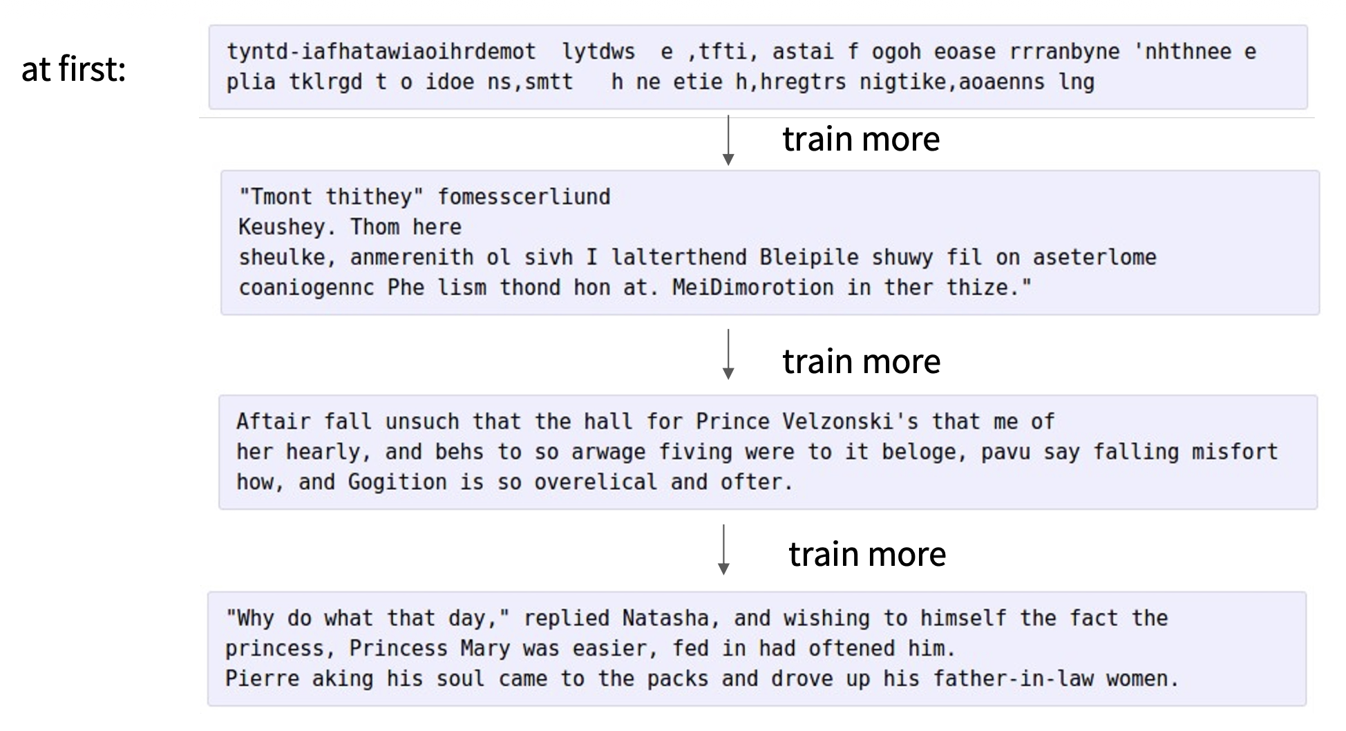 测试时每次仅采样一个字符,将输出反馈给模型(作为下一次的输入