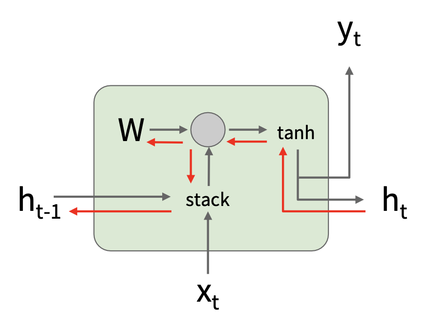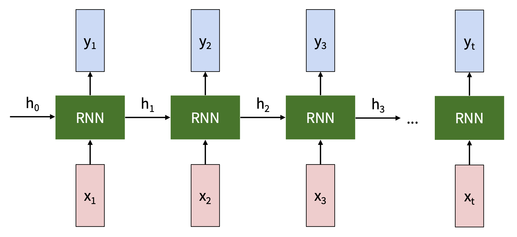 - \(h_t = \tanh (W_{hh}h_{t-1} + W_{xh}x_t)\)