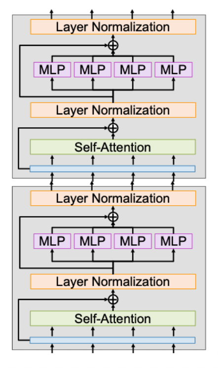 上述注意层还有一种更常见的变体,叫做自注意层(self-attention layer)。它的不同之处在于只有一个输入来源,即输入向量,而它对应原来注意层中的数据向量。而查询的计算类似键和值的计算,也是让输入向量和一个查询矩阵相乘得到。下面列出修改后的各项参数: