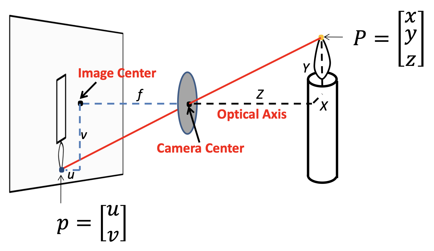 实际上,世界坐标(可能以米为单位测量尺寸)必须进行缩放以适应图像传感器(以像素为单位测量
