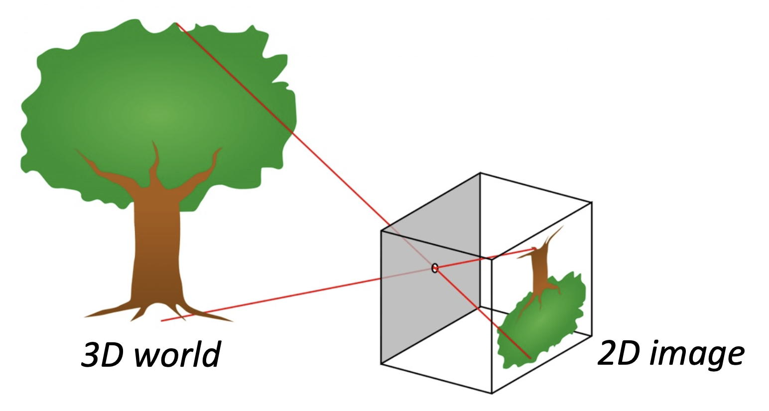 透镜(lens)(或镜头)有着和针孔相同的投影原理,但是它能让更多的光进来,并让这些光汇聚起来。