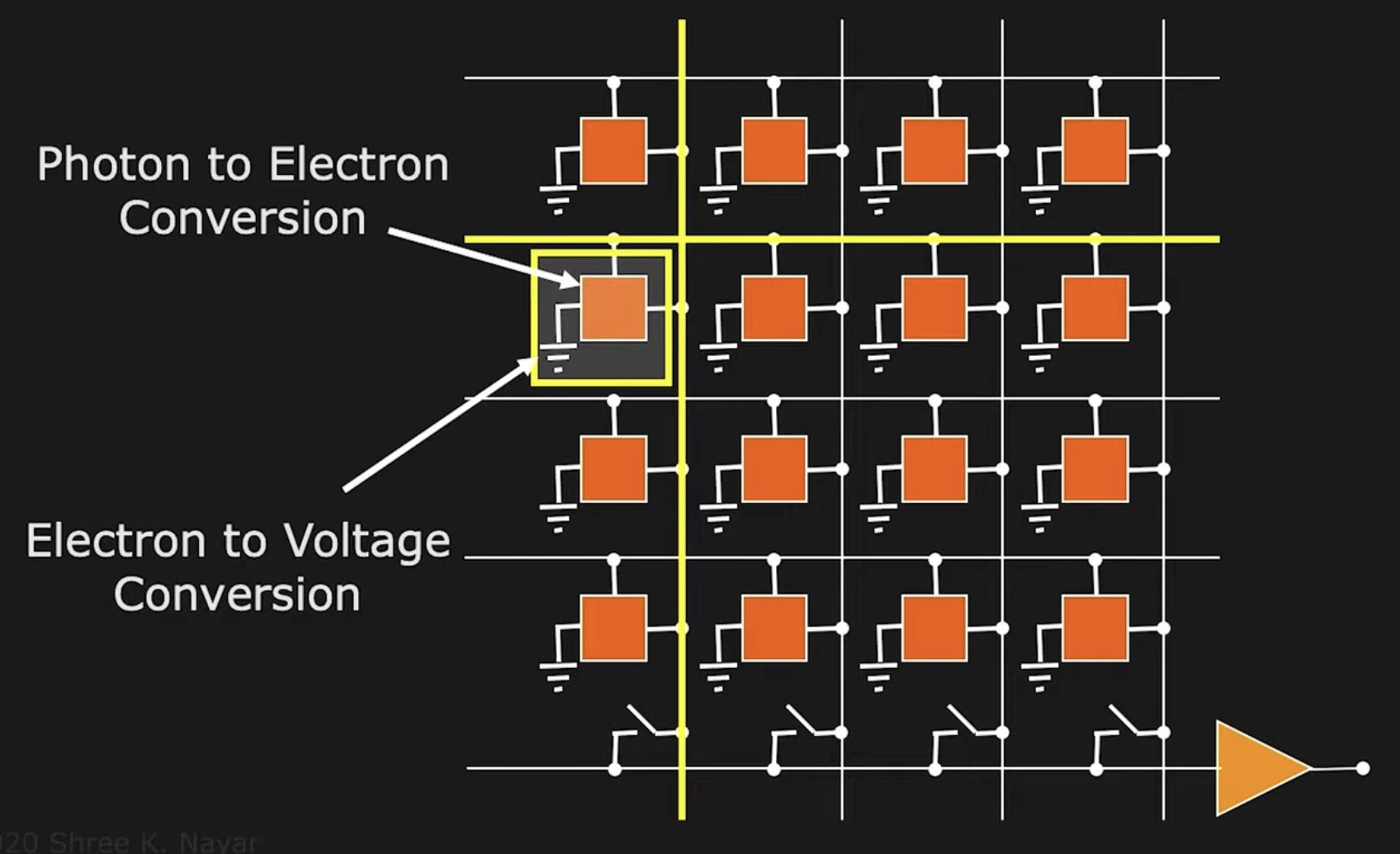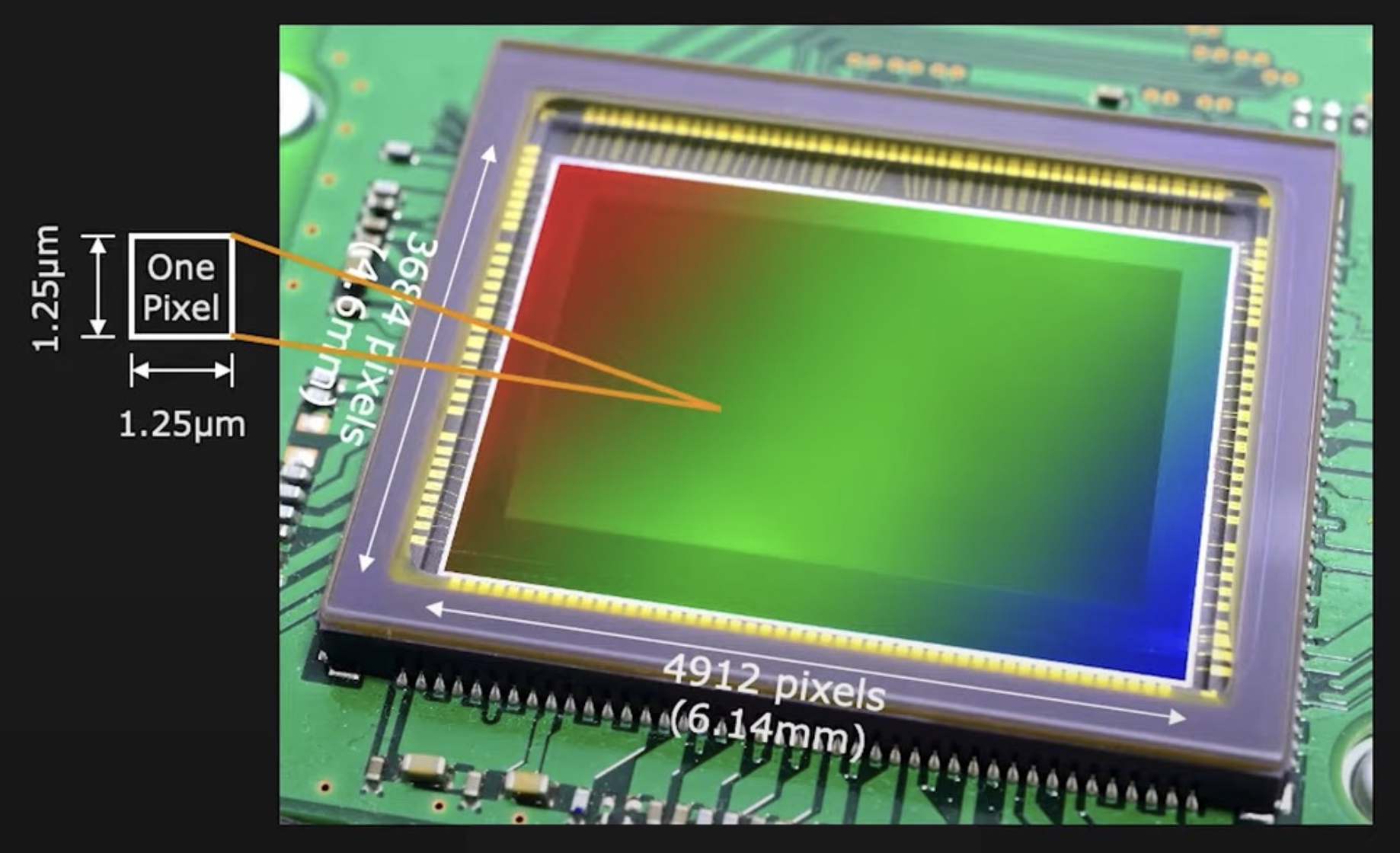 使用拜耳滤色镜(Bayer filter) 实现在单个芯片上的 RGB 感知。