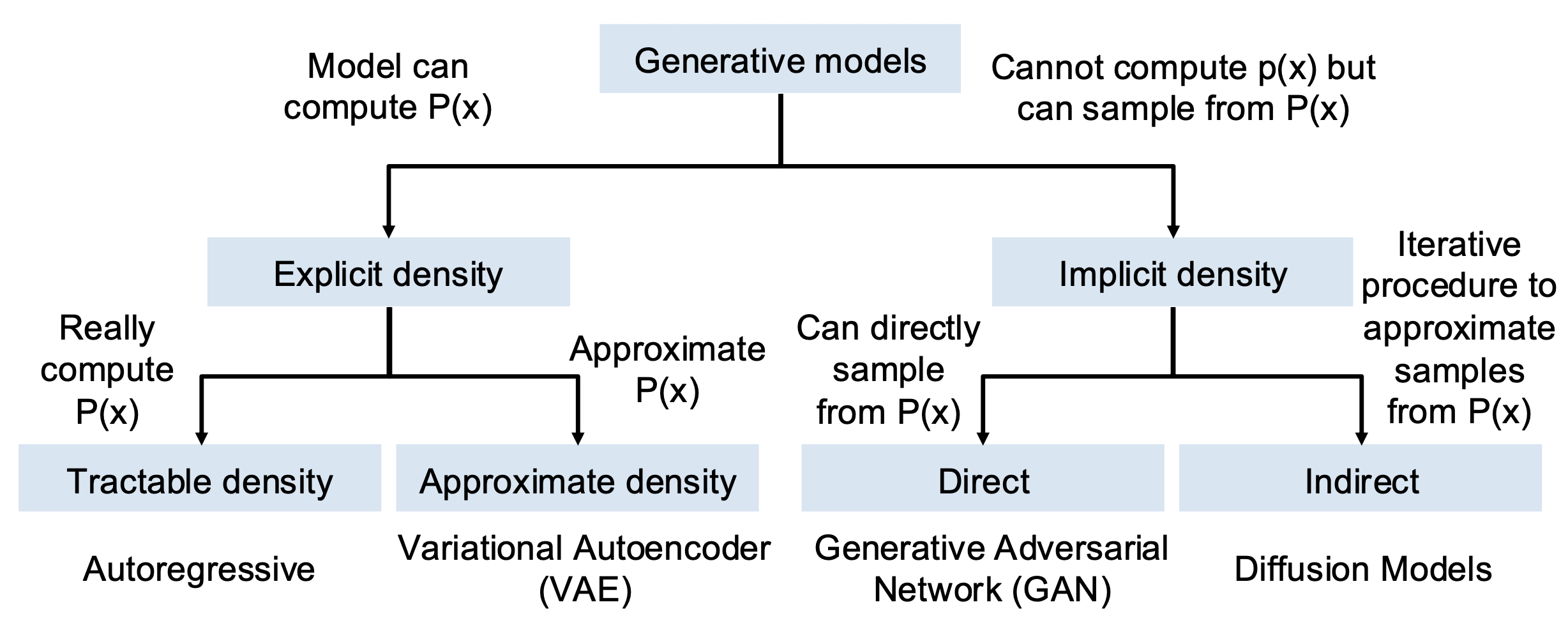 生成式模型(generative model):习得概率分布 \(p(x)\)
