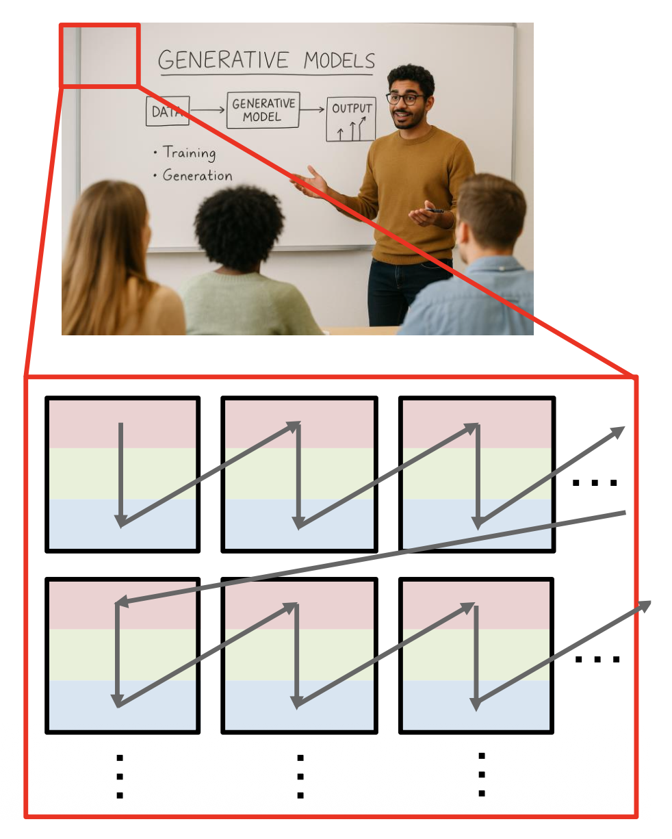 - 问题:成本太高,比如 1024x1024 的图像就是一个包含 3M 个子像素的序列