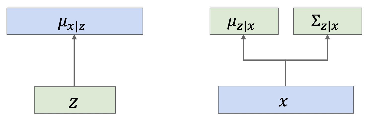 - \(q_\phi (z|x) = N(\mu_{z|x}, \Sigma_{z|x})\)