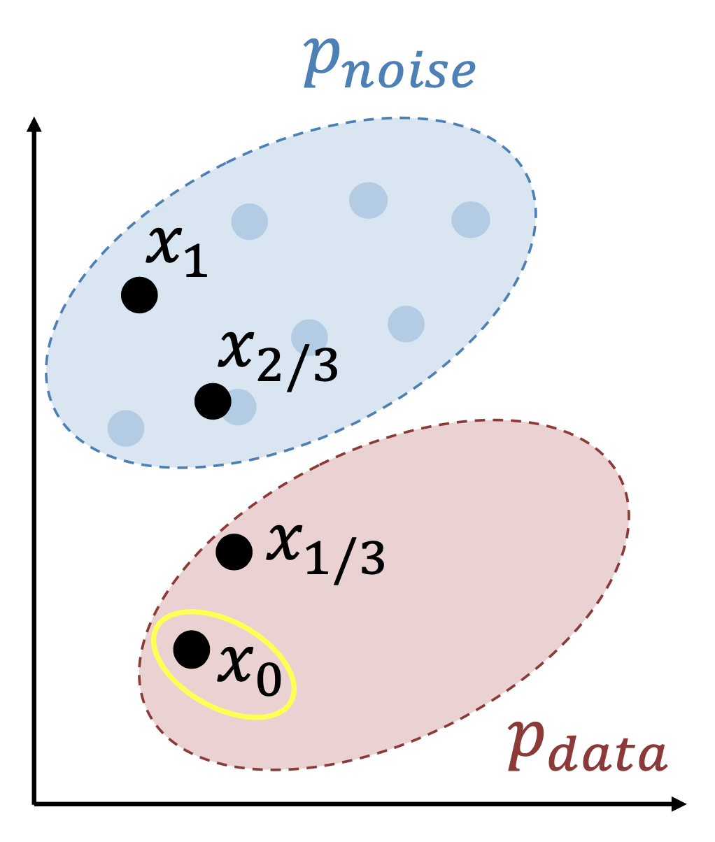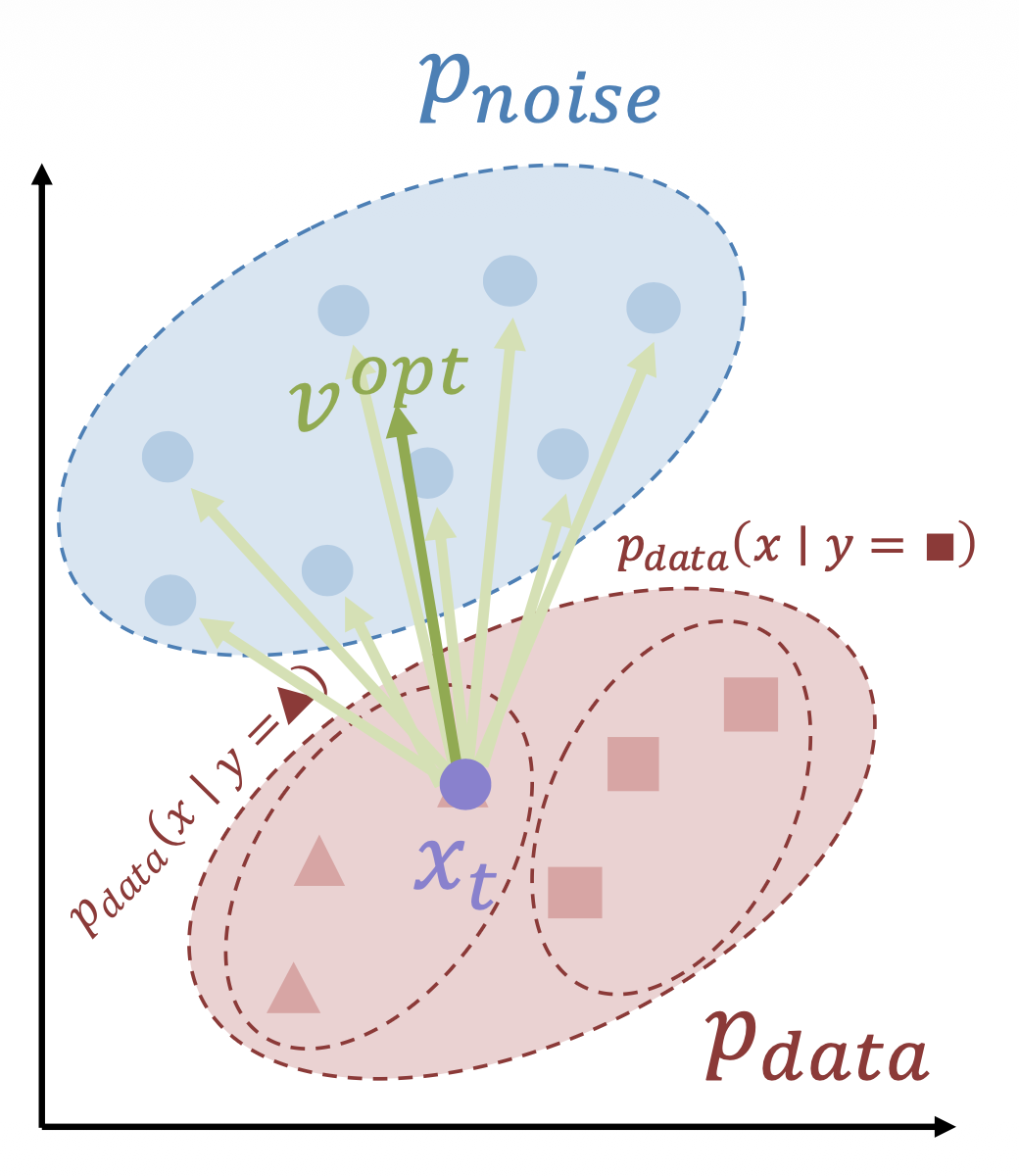 - \(\textcolor{yellowgreen}{v^y = f_\theta (x_t, y, t)}\) 指向 \(p(x | y)\)