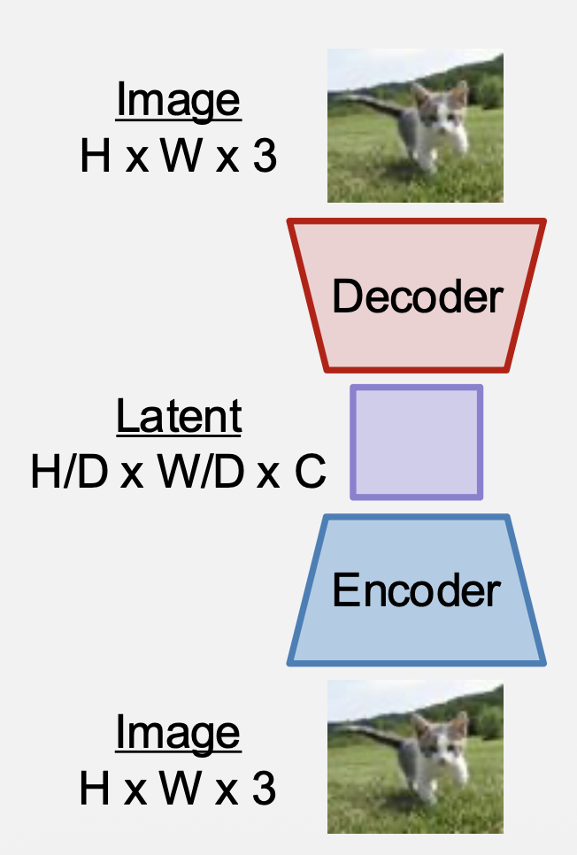 - 图像(256x256x3)=> 潜变量(32x32x16)
