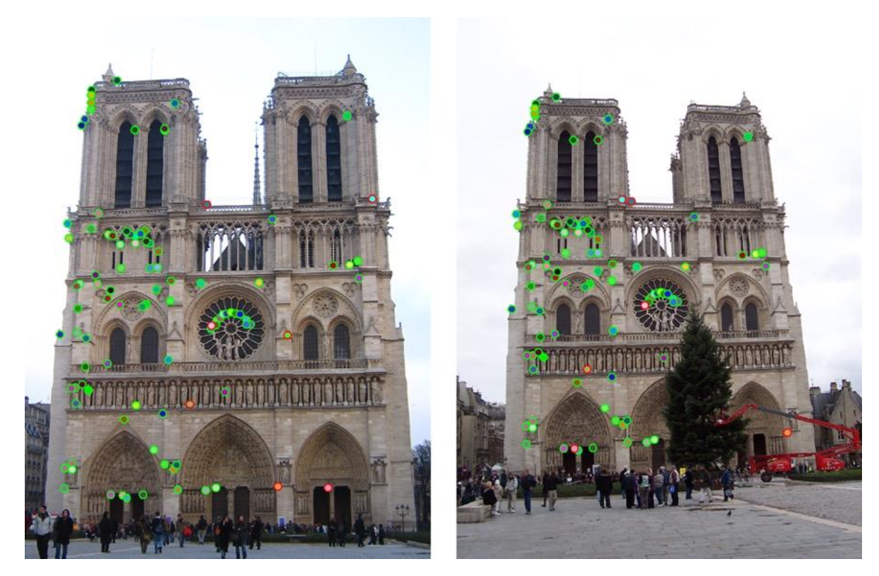 3. 匹配(matching):确定两个视图下描述符间的对应关系