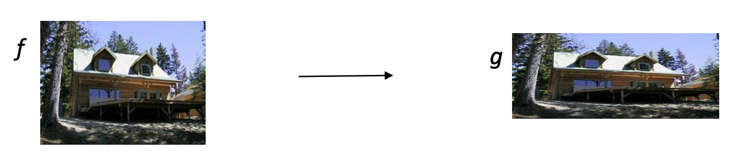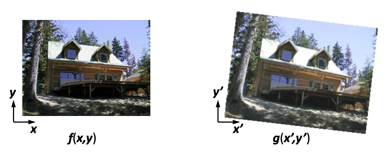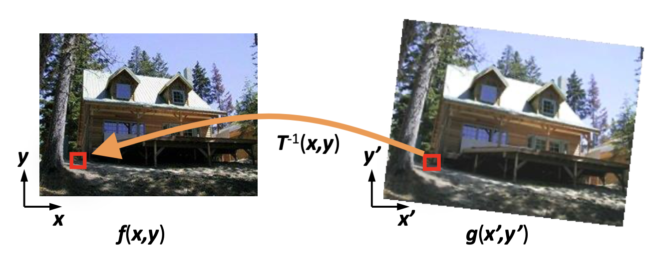 • 逆向扭曲(inverse warping):从对应 \(f(x, y)\) 上的位置 \((x, y) = T^{-1}(x, y)\) 上获取 \(g(x', y')\) 的每个像素