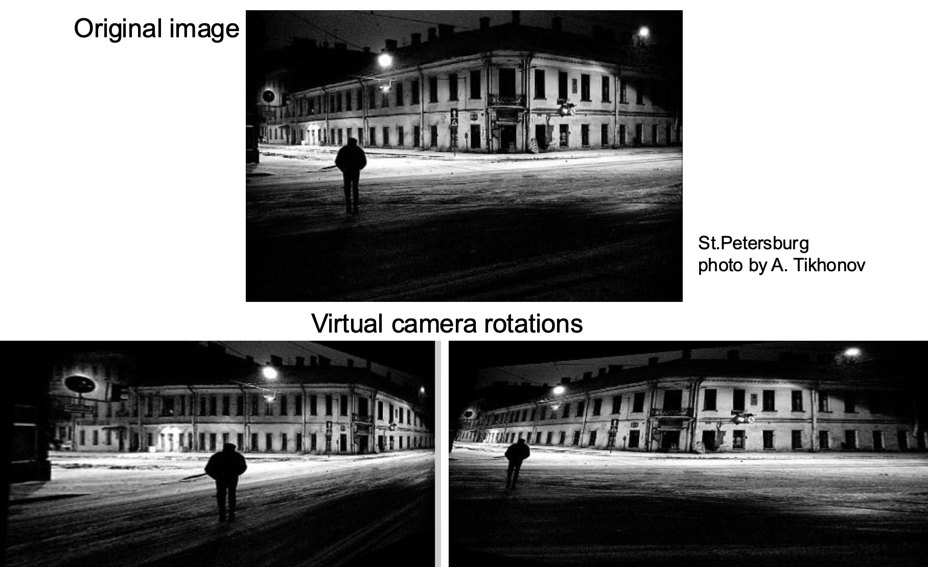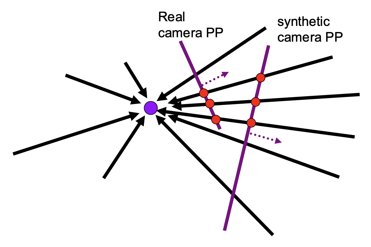 通过改变投影平面,可以生成任意的合成相机视角(只要确保有相同的投影中心