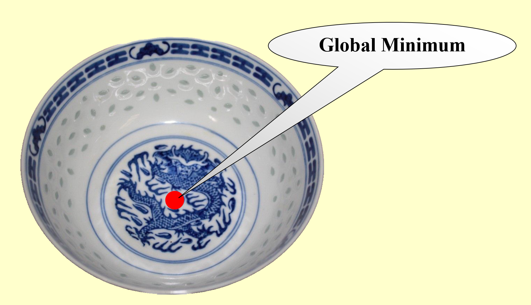 假如要求你使用局部搜索算法来寻找碗的(全局)最低点,如下图所示(图片的违和感太强