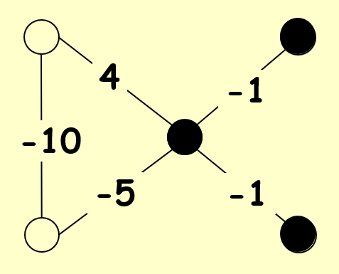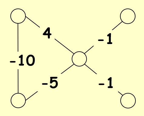 给定一张图(或者称为网络 (network)\(G = (V, E)\),每条边都有一个整数(不论正负)的权重 \(w\),其绝对值 \(|w|\) 称为需求强度 (strength of requirement);每个顶点的取值(称为状态 (state)\(s\) \(\pm 1\)