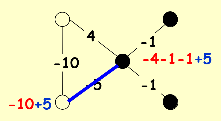 因此 \(\Phi(S') = \Phi(S) - \sum\limits_{e:e=(u,v) \in E \atop e \text{ is bad}}|w_e| + \sum\limits_{e:e=(u,v) \in E \atop e \text{ is good}}|w_e|\)