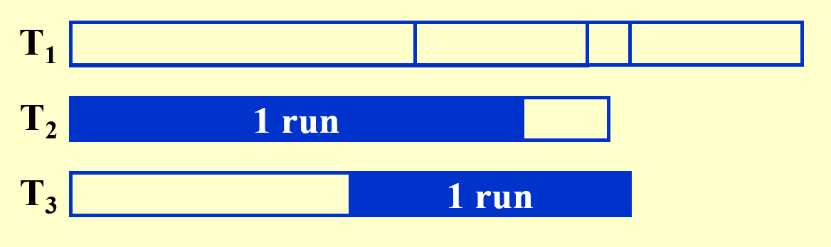 - 在主存中排好序的一组数据块称为顺串(run)