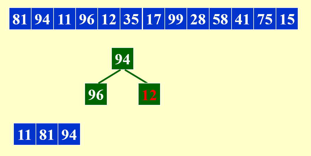 - 否则的话,后者要放在与前者不同的顺串内,且它不会与堆内和它处于不同顺串下的元素进行堆排序