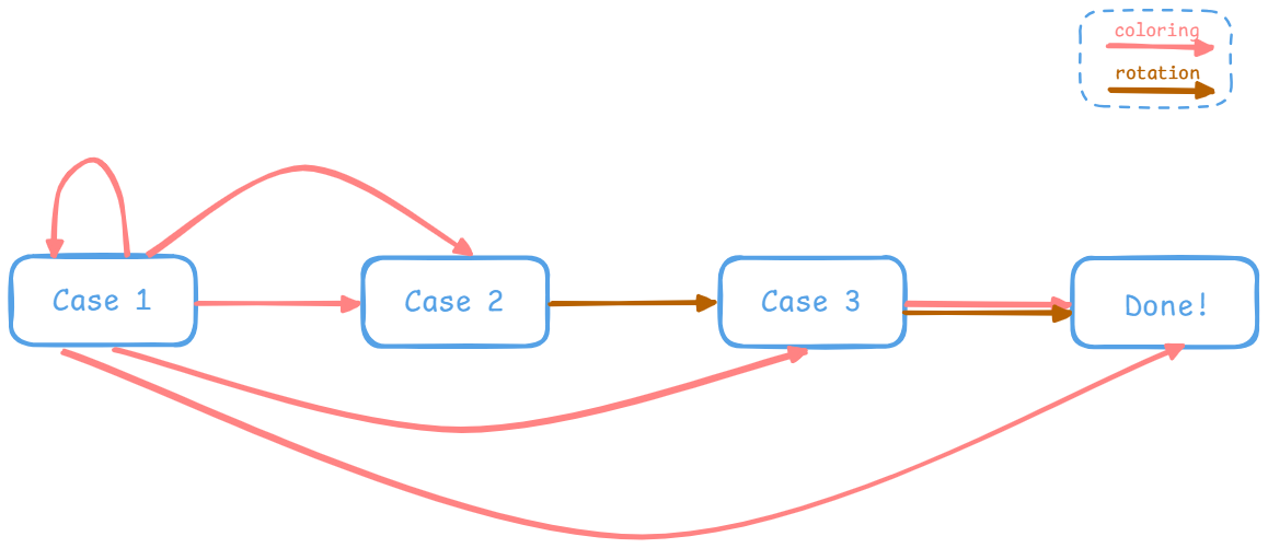 根据前面的分类讨论,我们可以画一个(不是特别标准的)状态图,从全局角度观察整个插入流程(想法来自修佬的笔记)
