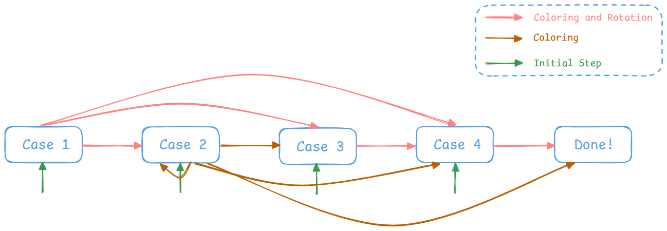 - Case 4:向空树插入新节点 -> 将该节点染黑即可