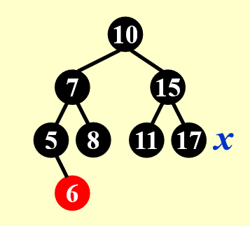 - 但很可能会遇到父节点也是红色的情况,这样需要我们做一定的调整,下面根据课件给出的例子,分情况讨论调整的方法