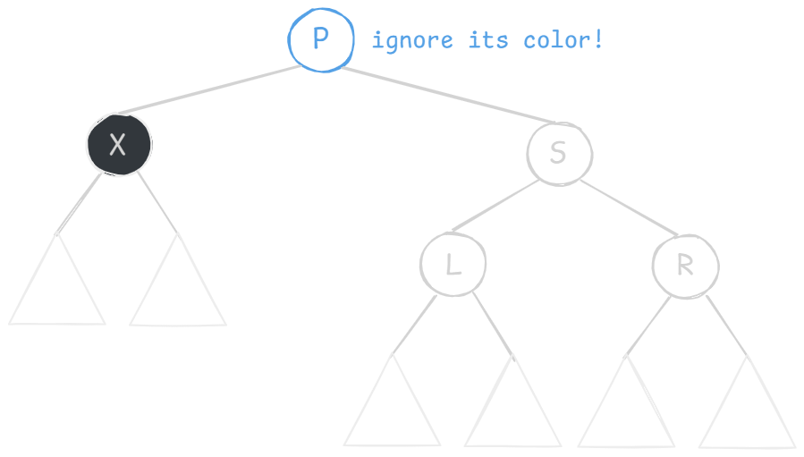 X 的兄弟及兄弟的两个孩子都是黑色的(不考虑 X 父节点的颜色)