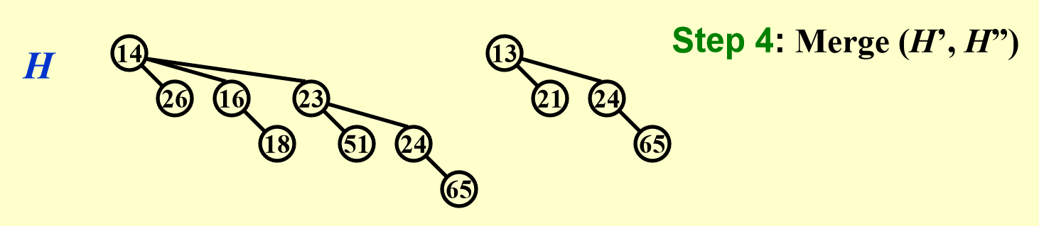 Merge(H', H'')\(\Rightarrow\ O(\log N)\)