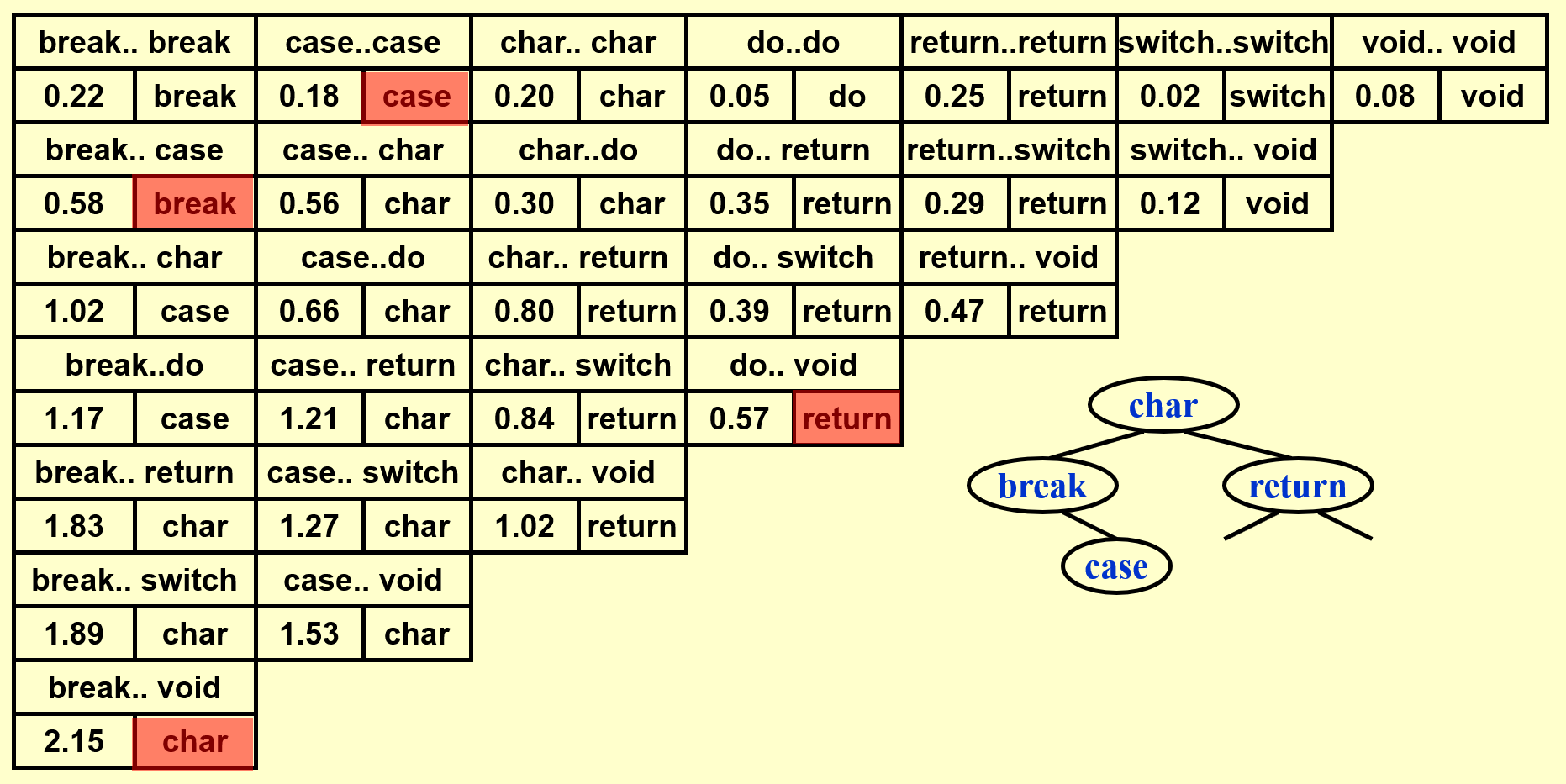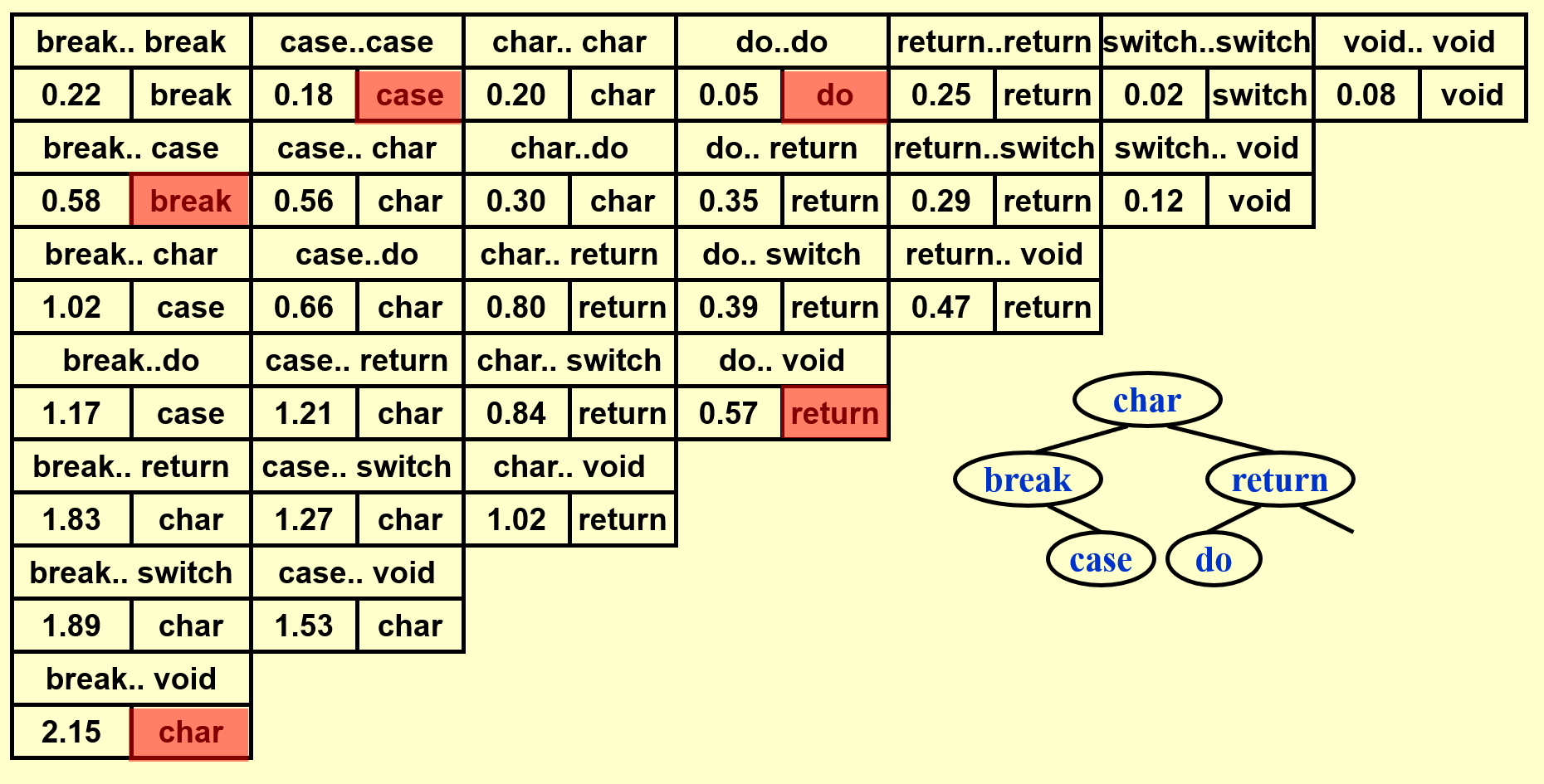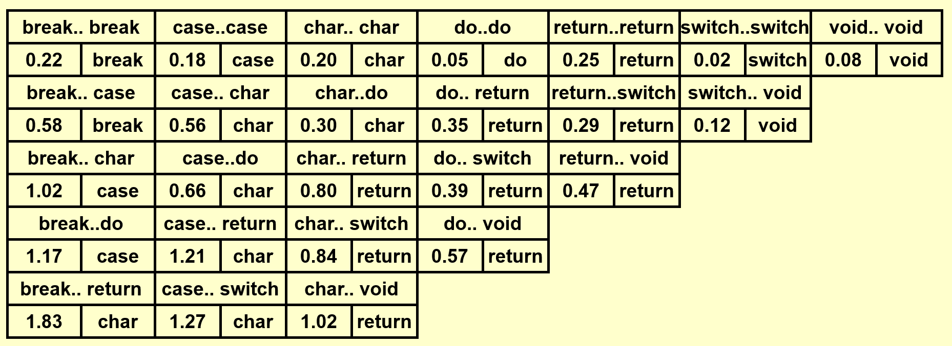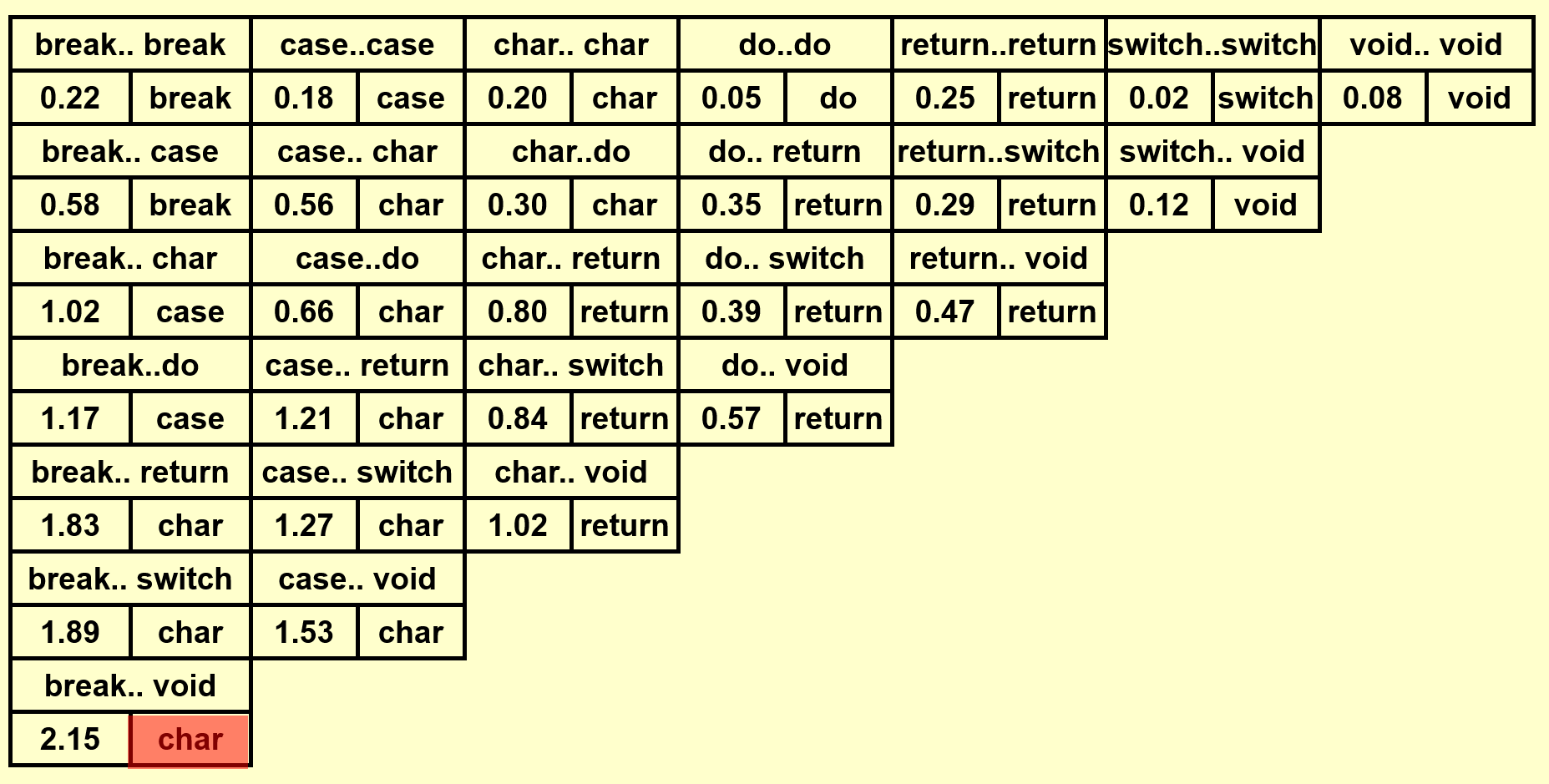 • 在计算过程中,我们保存了一张形如下三角矩阵的表: