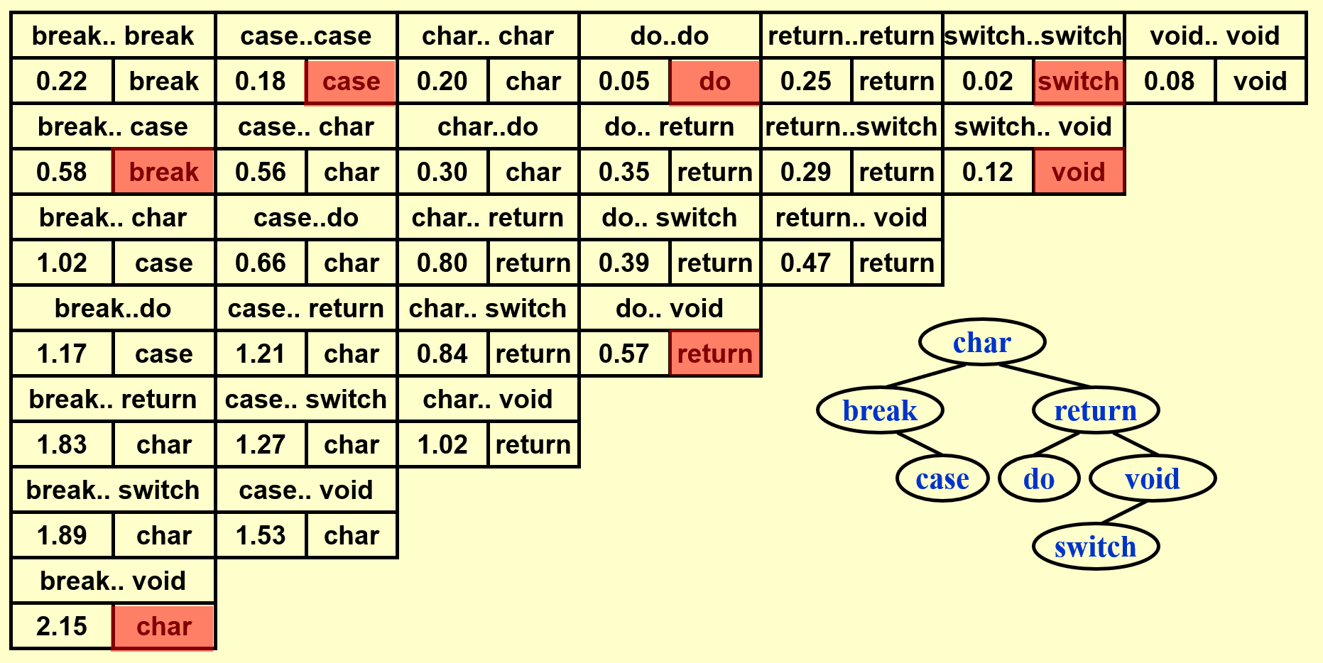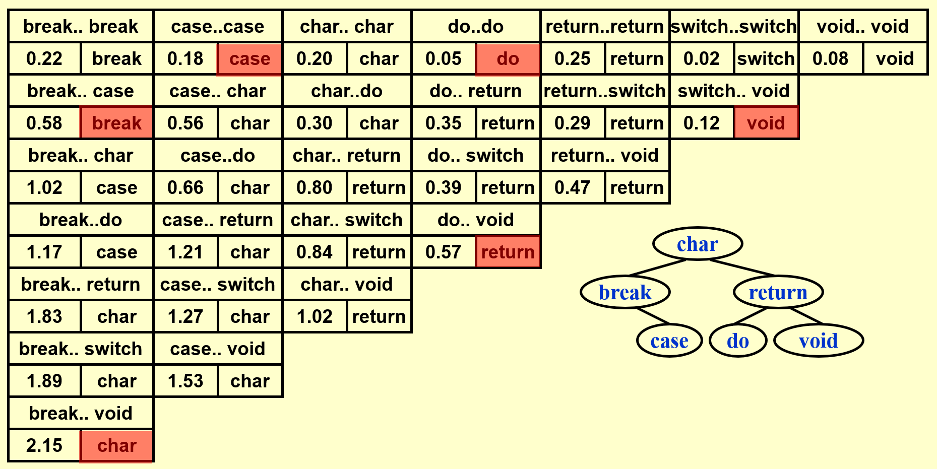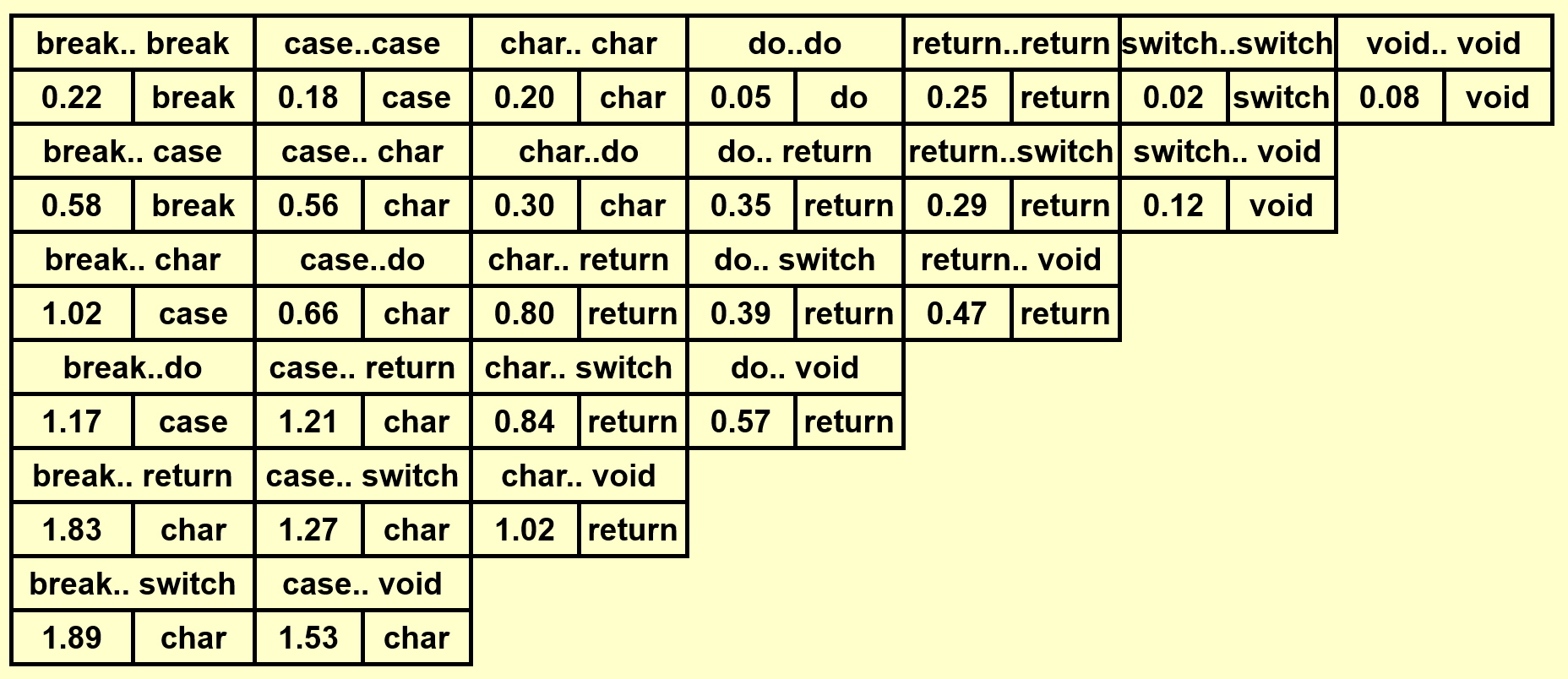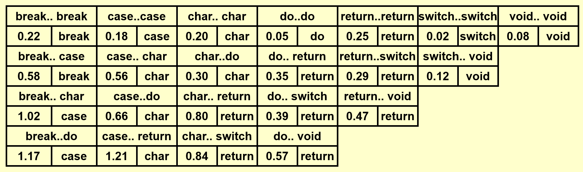 • 在计算过程中,我们保存了一张形如下三角矩阵的表: