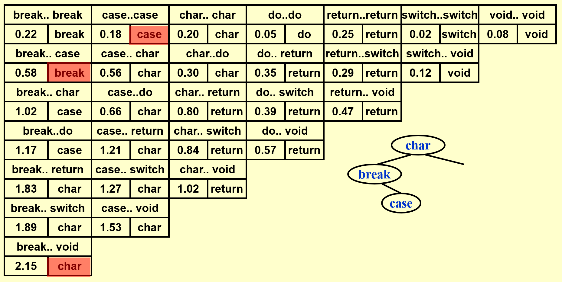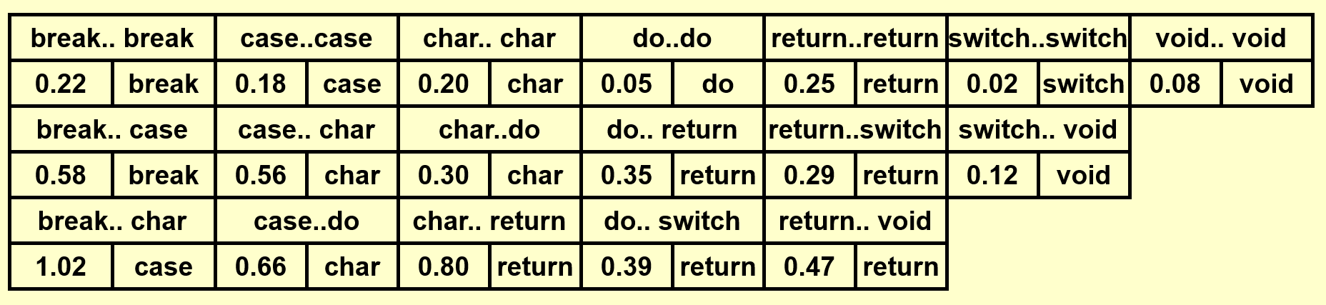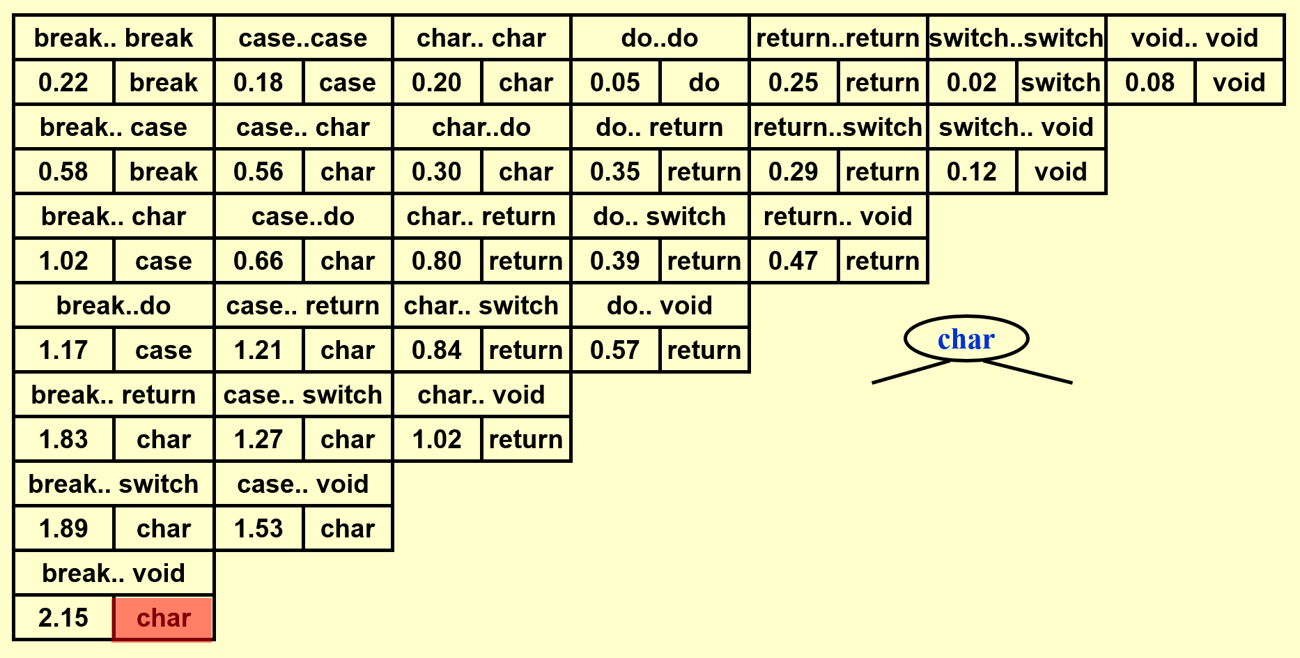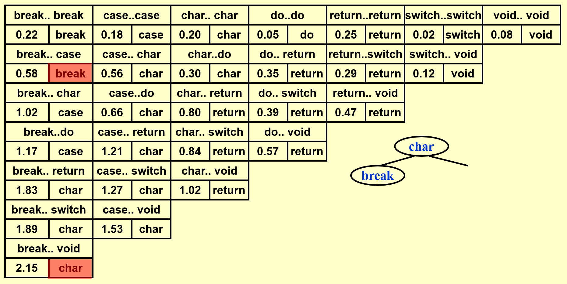 • 在计算过程中,我们保存了一张形如下三角矩阵的表: