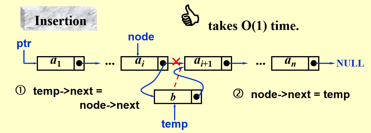 ) ,但插入和删除很快(\(O(1)\)) ,通过下面图示可以较为直观地感受到 - 最后一项的指针指向