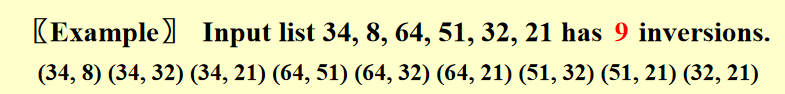 定义:一个数组中数字的逆序对 (inversion)是一个有序对 \((i, j)\),满足 \(i < j\) 且 \(A[i] > A[j]\)