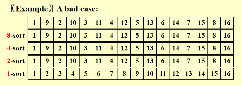 - \(h_k\)-sorted 的序列,经历了 \(h_{k-1}\)-sort 后,保持 \(h_k\)-sorted