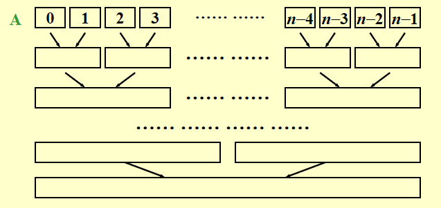 ) :对于整张列表,每 \(2^k\) 个元素进行归并排序,直到排完所有元素后的结果 - 快排:对于整张列表,找到当前能找的所有支点 (pivot) 后的结果(如果不理解,可以回顾一下前面介绍的原理,以及对应的题目)
