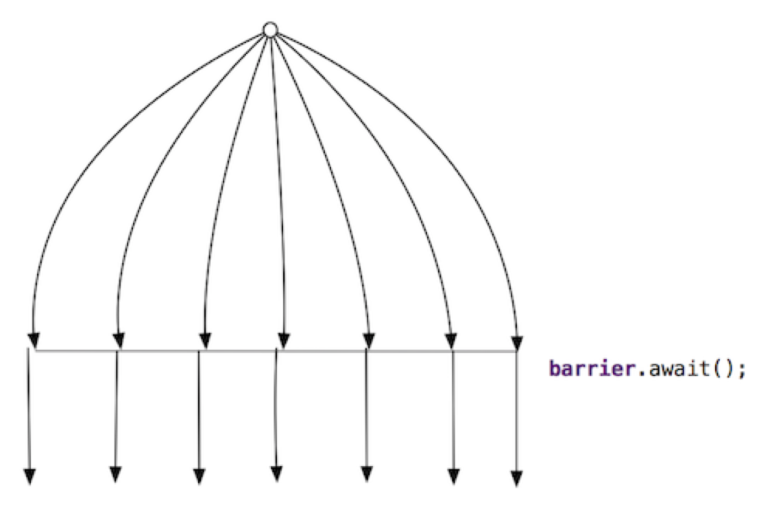 - 构造时指定参与线程数(parties)和可选的栅栏动作,线程在适当时机调用