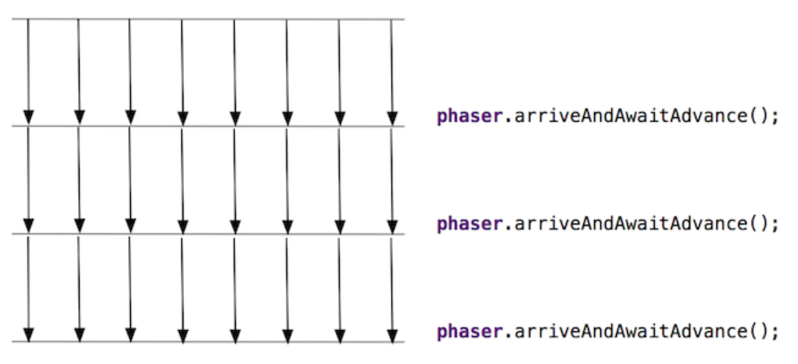 phaser.arriveAndDeregister(); // 主线程退出,party 减至 0,`Phaser` 自动终止