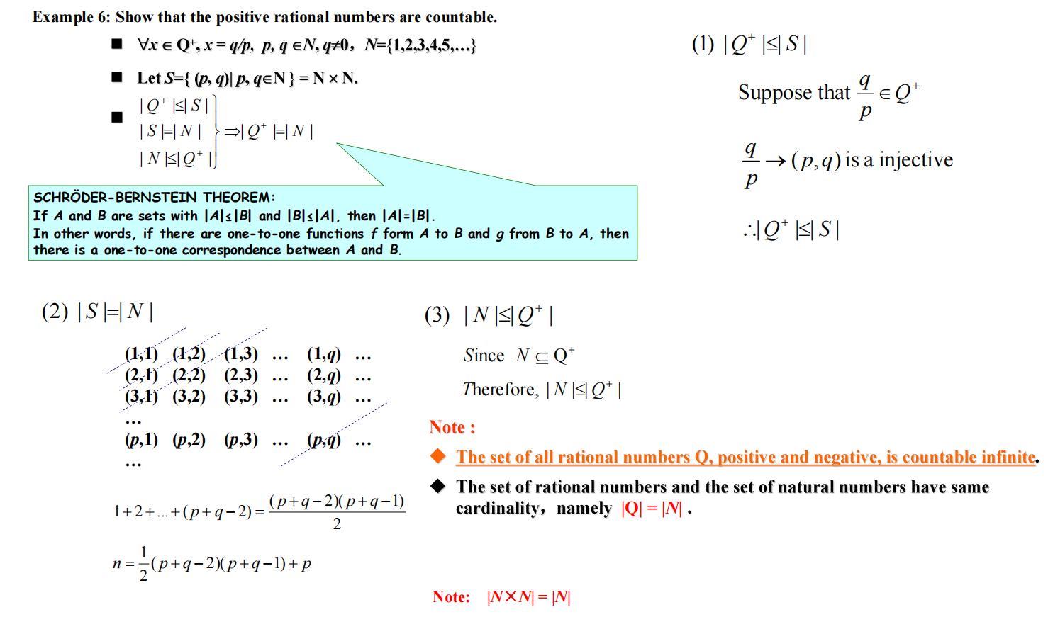 定理 2(SCHRODER-BERNSTEIN THEOREM):如果 \(|A| \le |B|\) 且 \(|B| \le |A|\),则 \(|A| = |B|\)。也就是说,如果 \(A \rightarrow B\) 是单射的,\(B \rightarrow A\) 也是单射的,则 \(A\) 与 \(B\) 有双射的