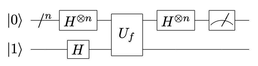 初始态: $$ |\psi_0\rangle = |0\rangle^{\otimes n}|1\rangle $$