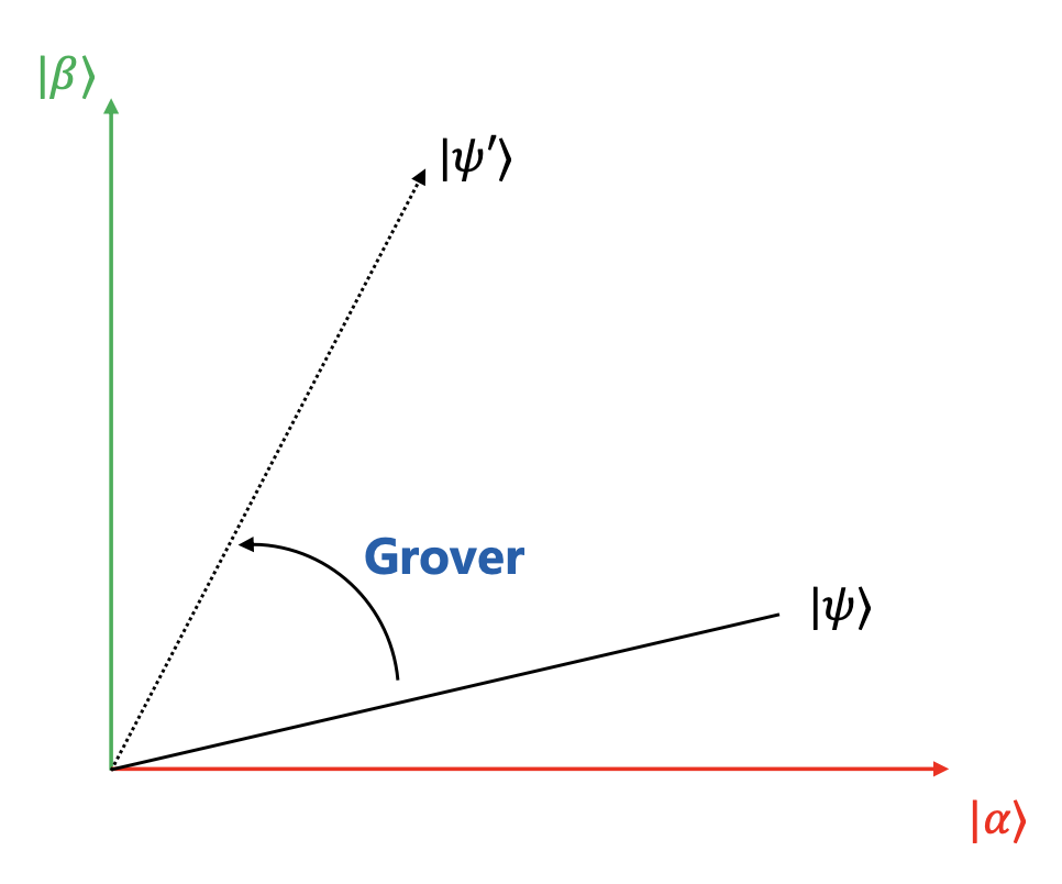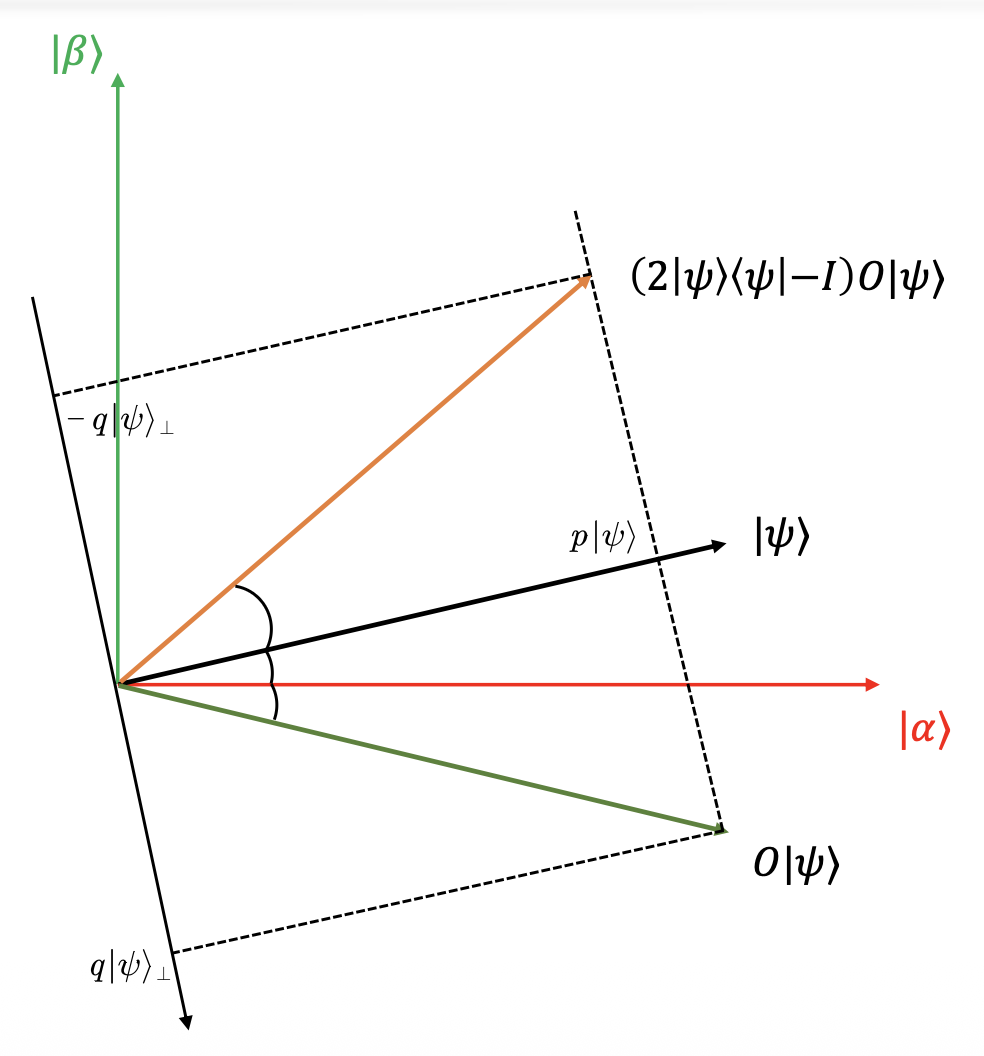 - \(G\) 算子几何意义:先将量子态相对 \(|\alpha\rangle\) 做对称,再将量子态相对 \(|\psi\rangle\) 做对称