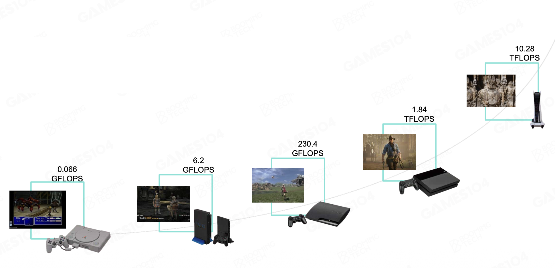 硬件的发展:以 PlayStation 为例,从第一代到第五代,26 年内算力整整近 20 万倍!