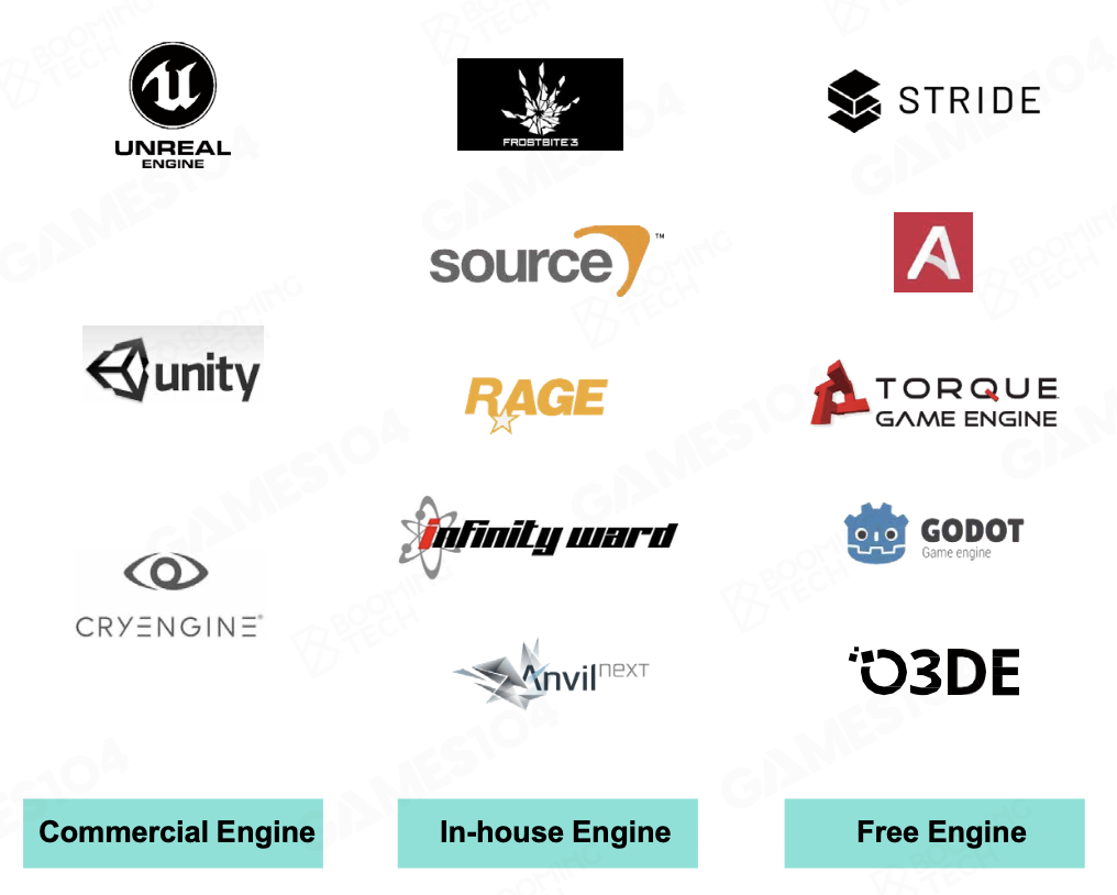 - 游戏引擎的一个很重要的属性是可协作(collaborative),能够让上百人的,有着不同技能团队能够顺利合作开发出一款游戏来