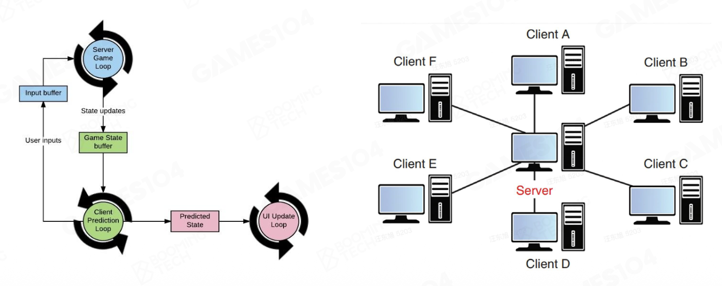 对于以下一个简单的两人联机动作游戏,也要考虑诸多的系统,比如渲染系统、动画系统、控制系统,以及网络相关的部件等