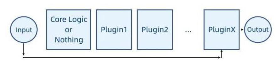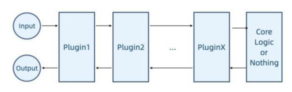 - 基于流水线,但系统的核心逻辑位于中间,插件同时关注进出逻辑