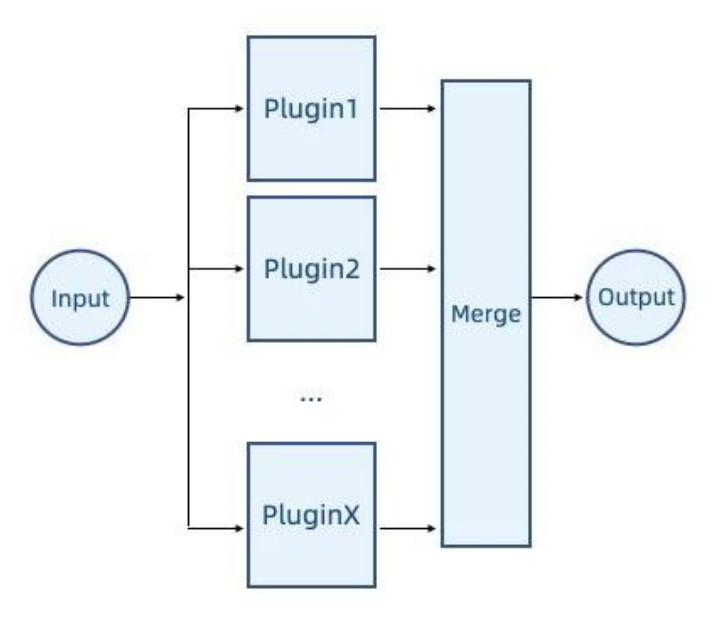 - 每个插件都会被执行,如果有输出,那么将合并最终结果