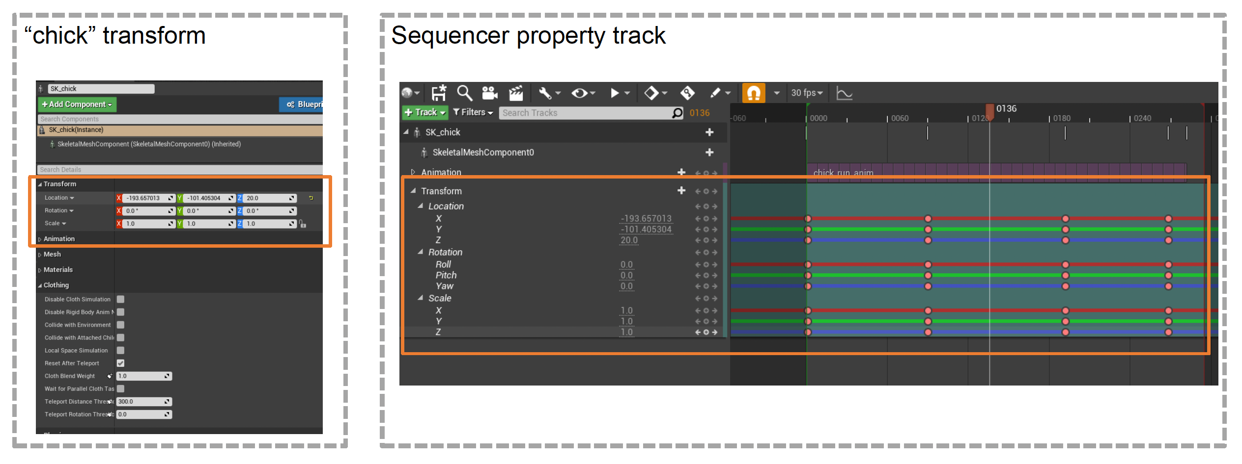 - 属性轨道(property track):轨道中引用参与者的属性