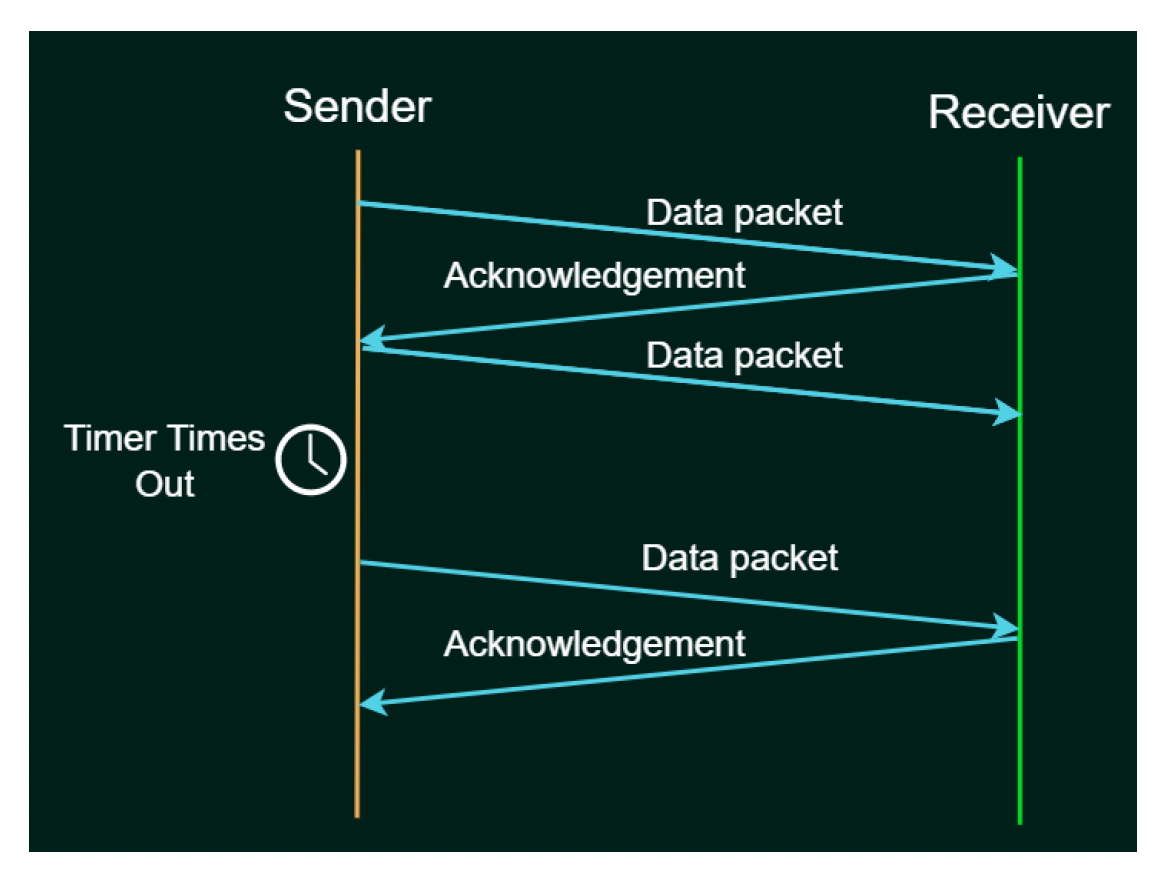 自动重传请求(automatic repeat request, ARQ) 是一种用于数据传输的错误控制方法,利用 ACK 和超时,在不可靠的通信通道上实现可靠的数据传输。如果发送者在超时前没有收到 ACK,它会重新发送数据包,直到收到确认或超过预定义的重传次数。
