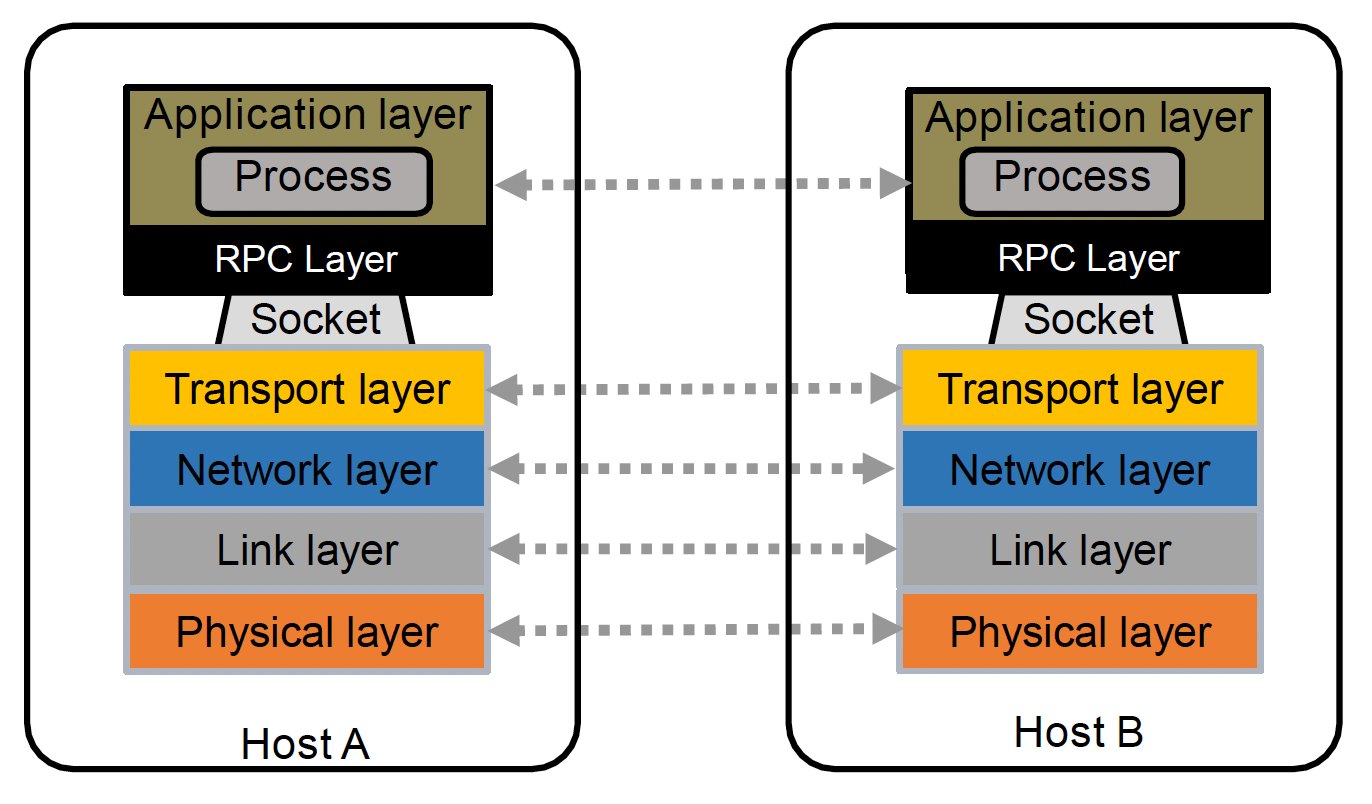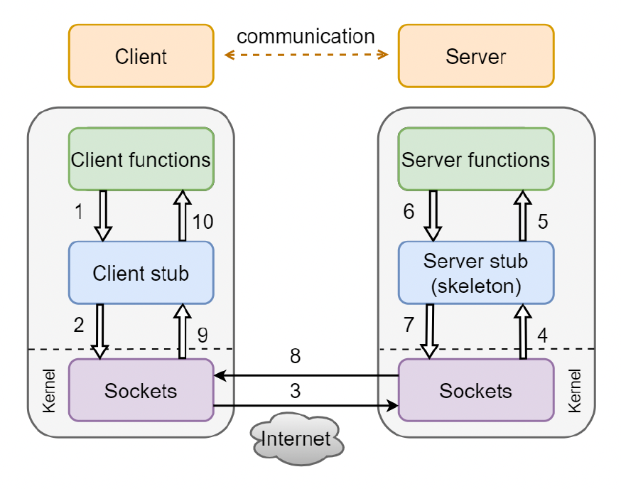 客户端与服务器之间的通信还有一种叫做 RPC 存根(stubs) 的中间层。