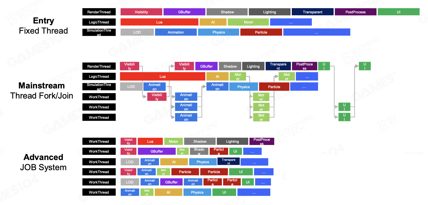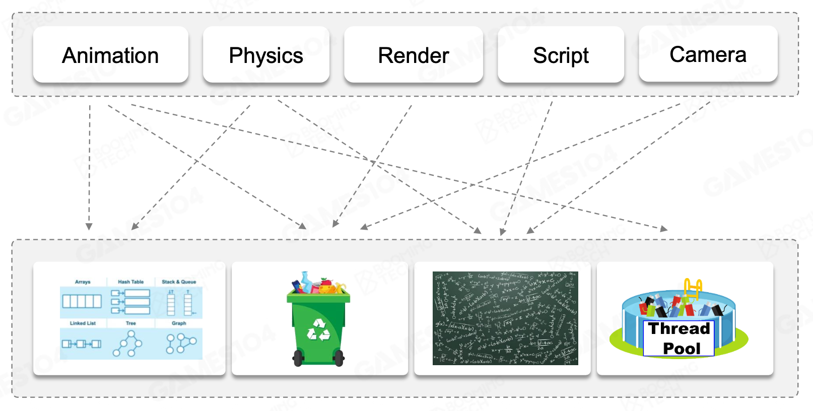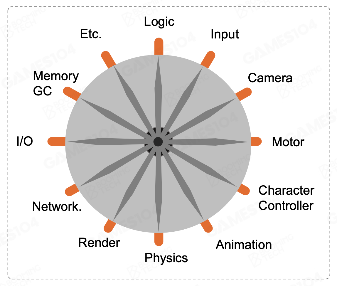 - 很多游戏引擎系统以并行(parallelism) 方式构建