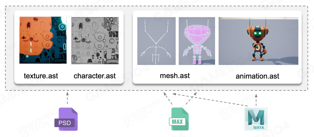 - 把复杂的数据格式转化为对游戏引擎而言更高效的数据