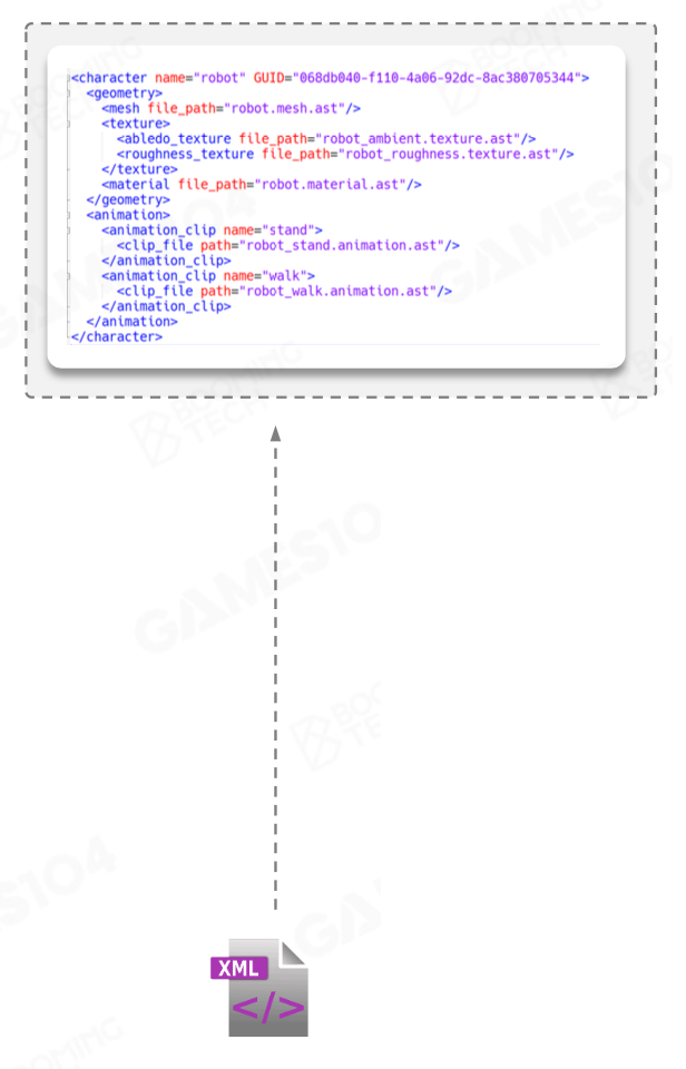 通过定义一个元资产文件格式(meta asset file format) 来统一文件访问(比如 .ast 文件)
