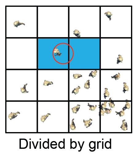 简单的空间分段:将场景划分为均匀的格子,事件发生时只需向邻近格子内的对象发消息即可