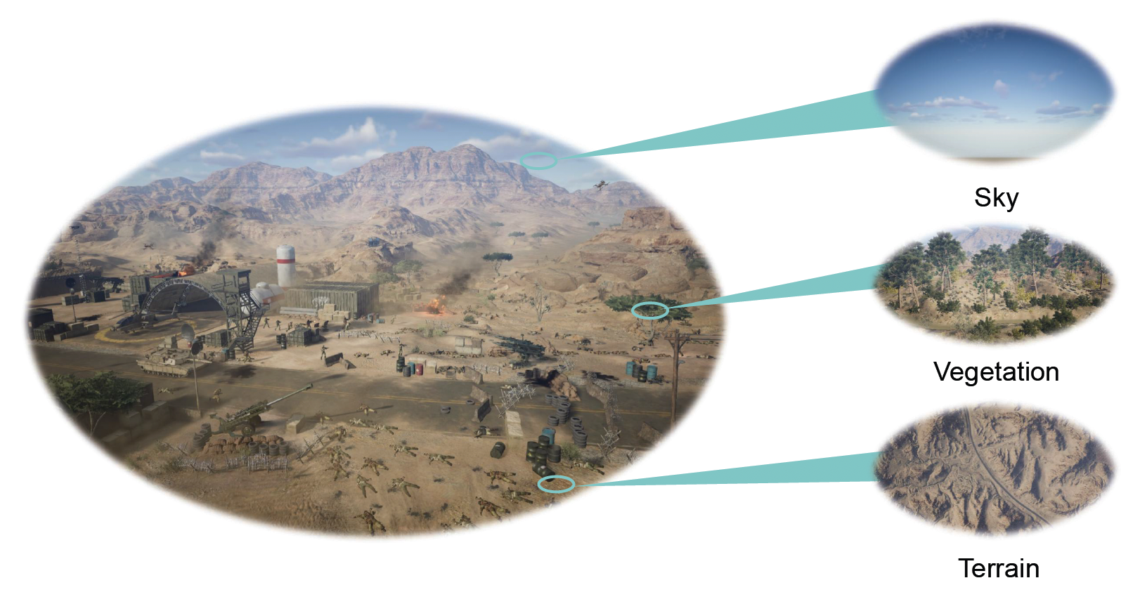 - 天空:反映日夜、天气的变换(有一个专门术语:日夜变换系统 (time of the day))