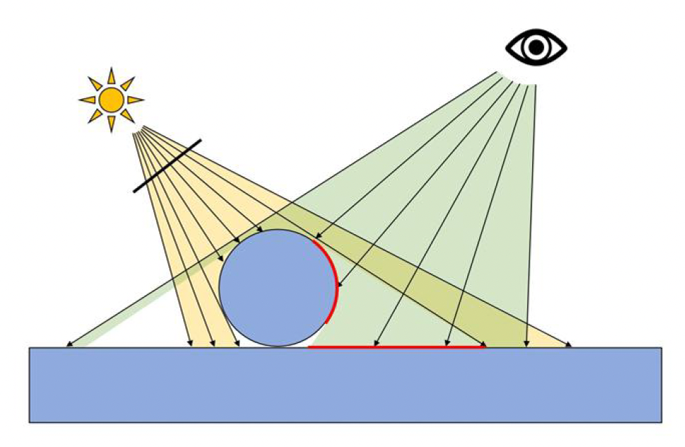 原理:由于表面高低不平,眼睛能看到点 B,但看不到点 A,这产生了一种立体感
